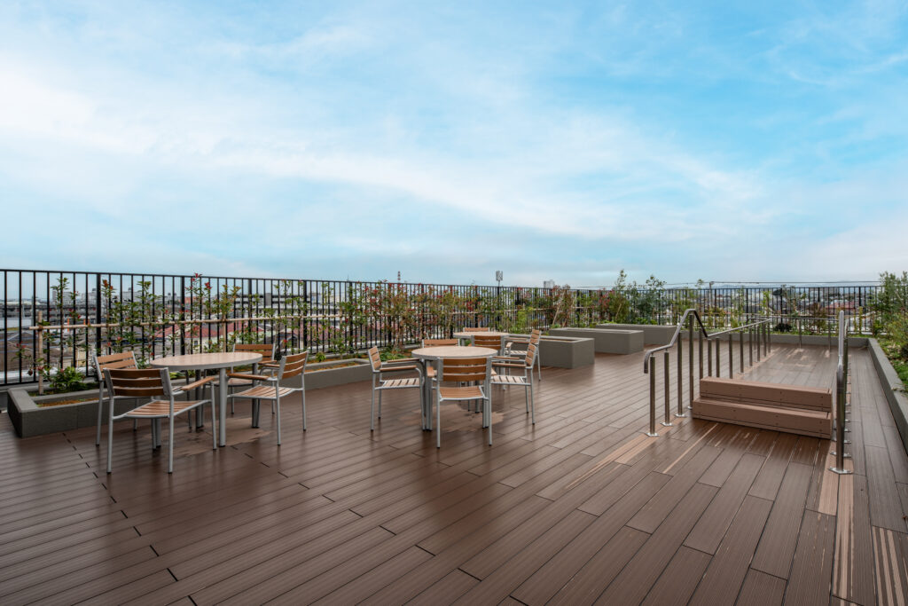 それによって生まれた前庭空間には、公共公園やキッチンカースペースを整備し、地域に開かれた空間となるよう計画しました。